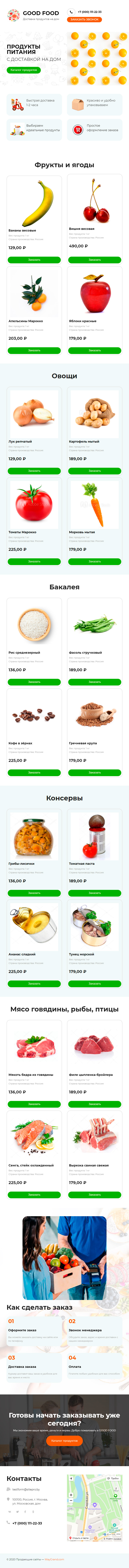 - Промоблок "Продукты с доставкой" с кнопкой призыва к действию "Каталог продуктов"