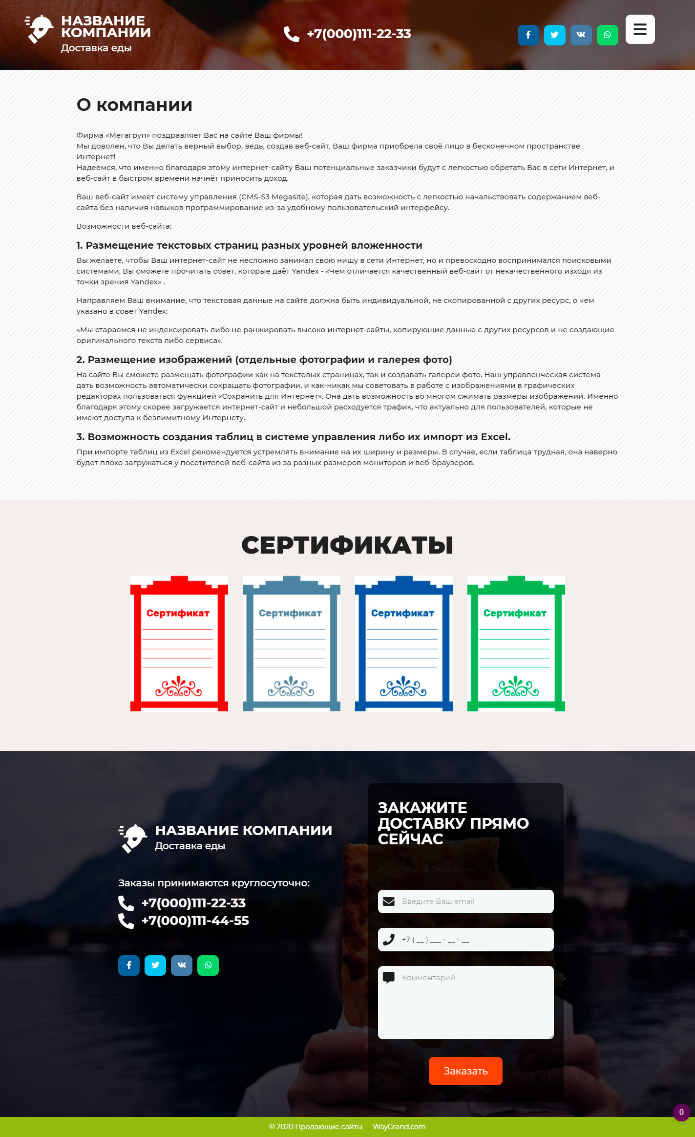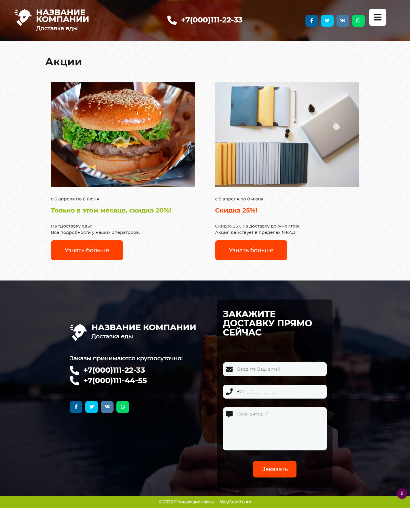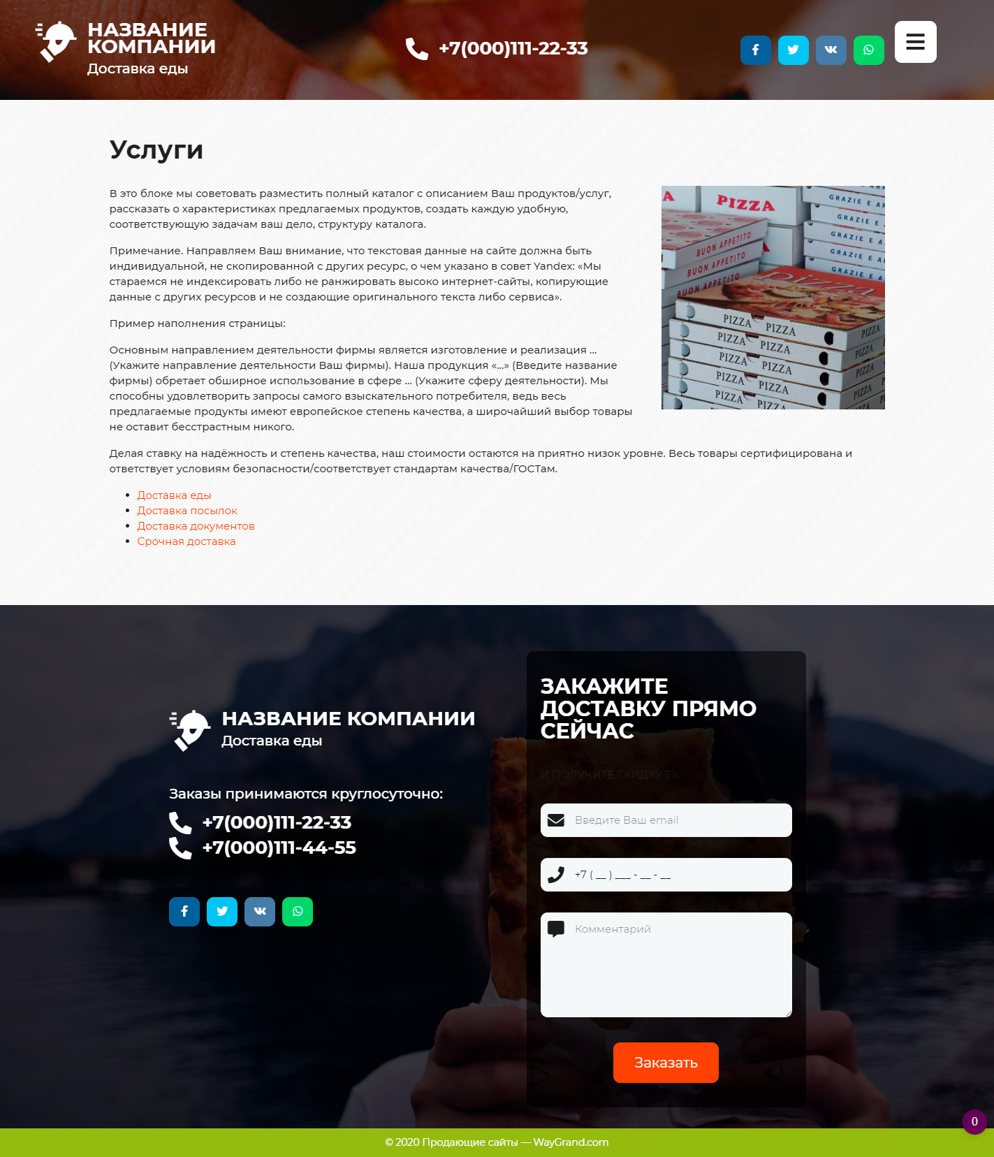 Готовый сайт визитка Курьерская доставка еды #3071302 — Купить на WayGrand.com в Костроме