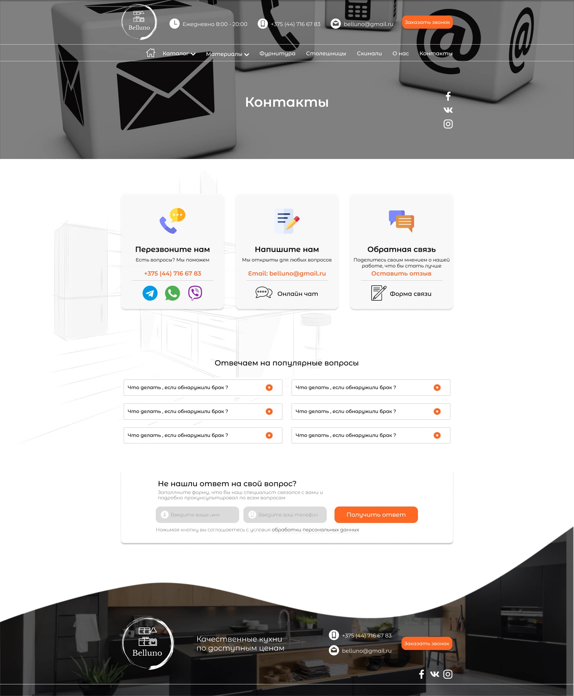 Закажите готовый продающий сайт визитка #282 в Костроме за 5-7 дня «под ключ»: свёрстан, отрисован и готов к рекламе. Тематика шаблона «Кухни».