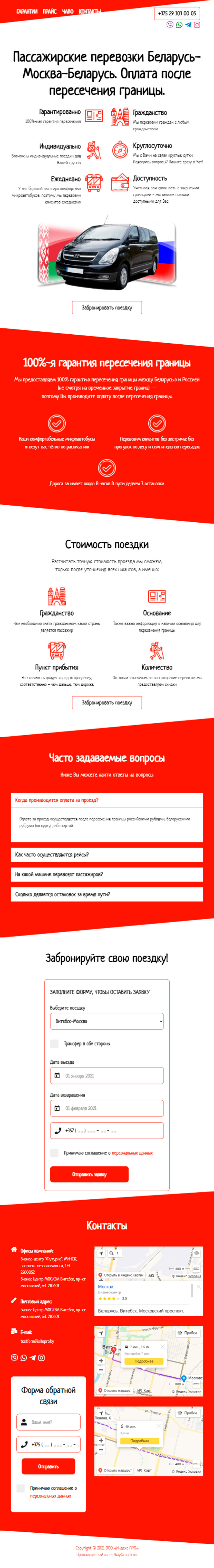 Закажите готовый продающий сайт лендинг #2528201 в Костроме за 1-3 дня «под ключ»: свёрстан, отрисован и готов к рекламе. Тематика шаблона «Пассажирские перевозки Беларусь-Москва-Беларусь».