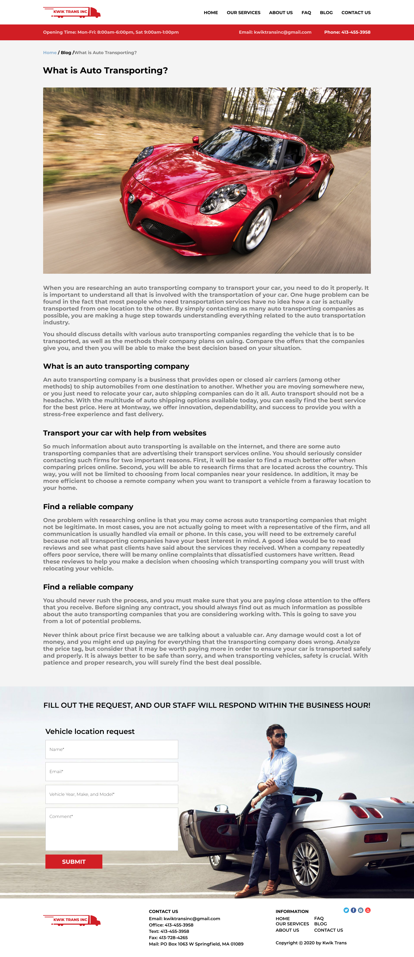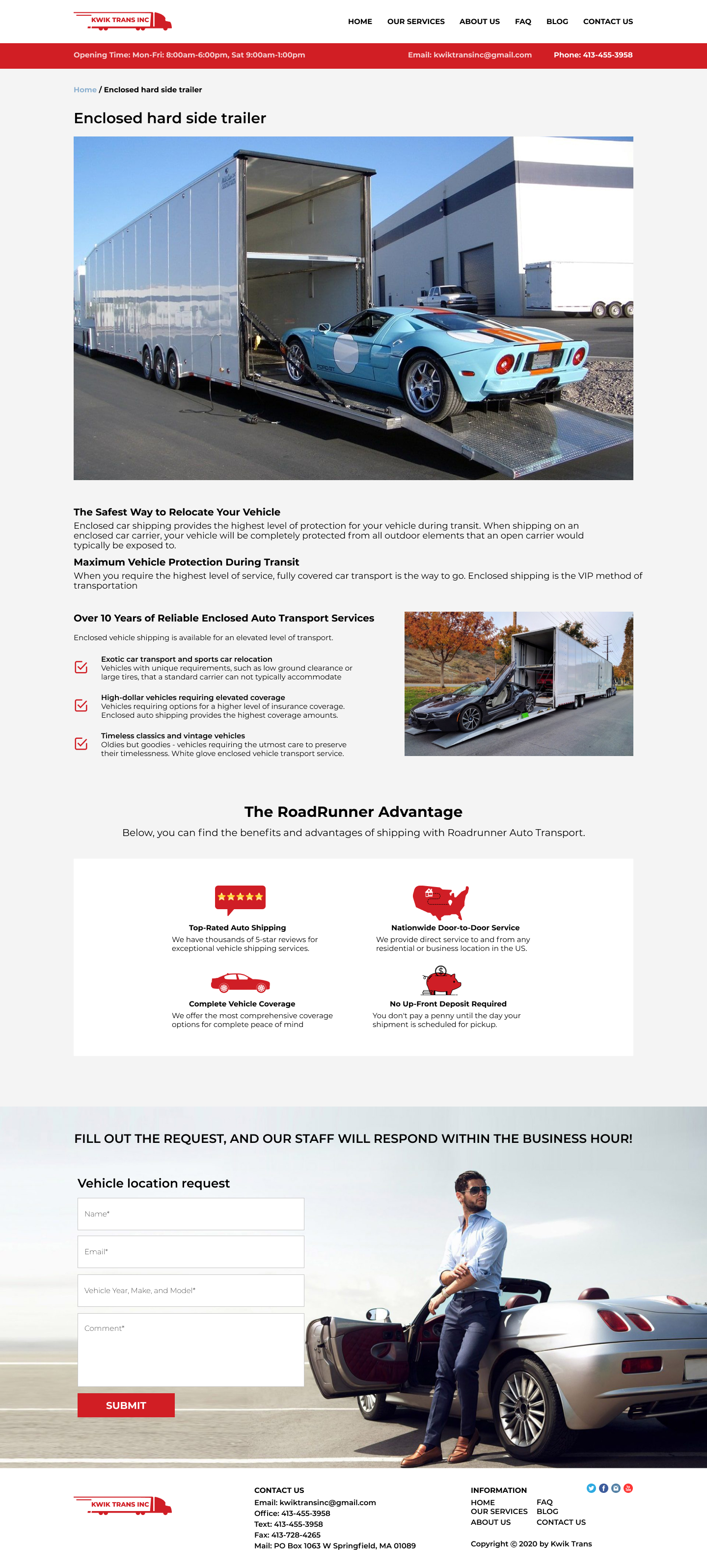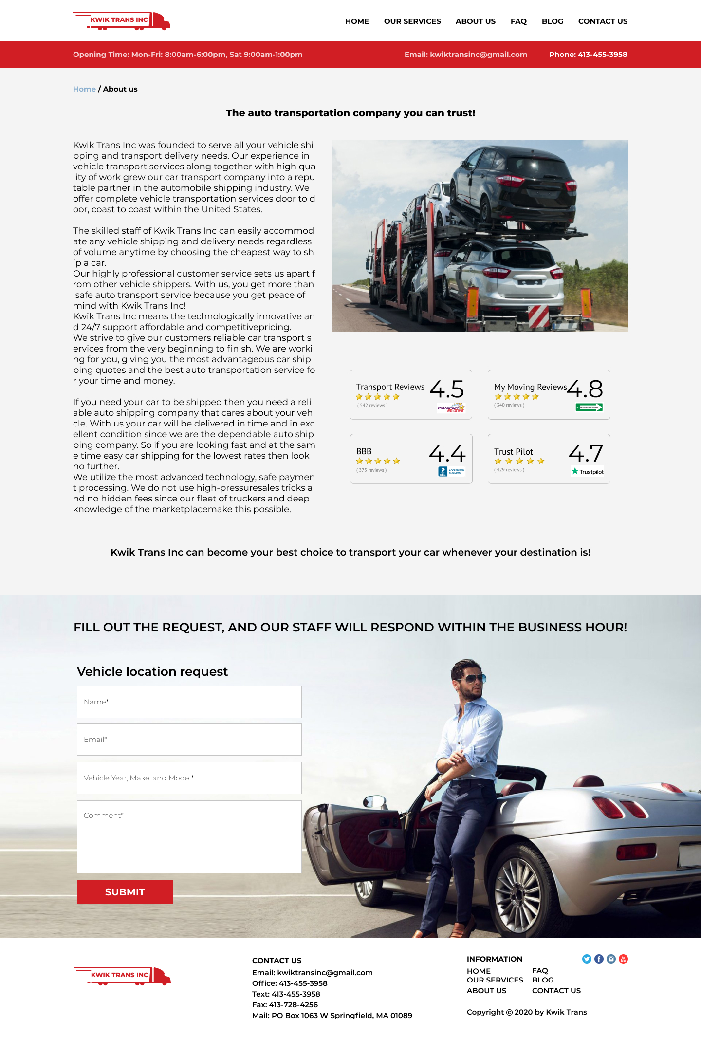Закажите готовый продающий сайт визитка #223 в Костроме за 5-7 дня «под ключ»: свёрстан, отрисован и готов к рекламе. Тематика шаблона «Safe & Reliable National Auto Transport».